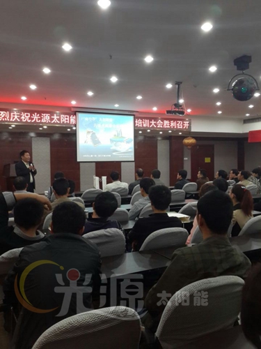 為加強公司與經(jīng)銷商之間的溝通,幫助經(jīng)銷商熟悉并掌握公司概況、產(chǎn)品知識、促銷技巧及售后服務(wù)知識,河北光源太陽能科技有限公司2014廠商共贏睿智創(chuàng)富峰會于2014年4月17日晚在山西侯馬市怡鑫大酒店隆重開幕,本次峰會匯集來自運城、河津及臨汾三大城市經(jīng)銷商,到會100余人。