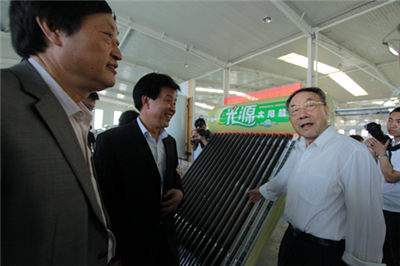 期間,視察團(tuán)領(lǐng)導(dǎo)在公司董事長(zhǎng)李成斌等陪同下,先后視察了公司五連鍍?nèi)詣?dòng)真空管生產(chǎn)線、臥式環(huán)戊烷發(fā)泡水箱生產(chǎn)線、全自動(dòng)產(chǎn)品組裝車間等國(guó)內(nèi)一流生產(chǎn)線,視察了單機(jī)、壁掛等太陽能產(chǎn)品成品庫(kù),同時(shí)認(rèn)真聽取了公司副總邵東坤匯報(bào)的關(guān)于公司生產(chǎn)和經(jīng)營(yíng)環(huán)節(jié)的現(xiàn)狀,和公司發(fā)展規(guī)劃,詳細(xì)詢問了公司太陽能熱開水工程業(yè)務(wù)研究和開發(fā)現(xiàn)狀。