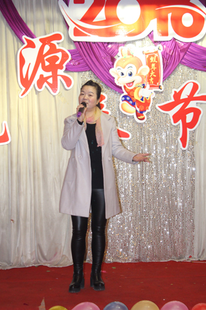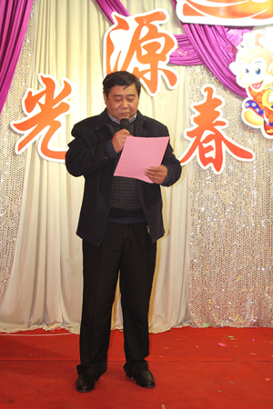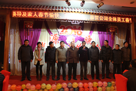 晚會開始前,董事長李成彬首先致辭。在致辭中,李成彬向全體員工恭賀新春,對2015年工作進行了回顧,對2016年工作進行了展望和描繪。接著,公司領(lǐng)導李成彬、劉迎波、邵東坤、李友民一起上臺向大家拜年。公司各部門經(jīng)理一起上臺給大家拜年。恭祝大家新年快樂,猴年大吉,闔家歡樂,萬事如意。