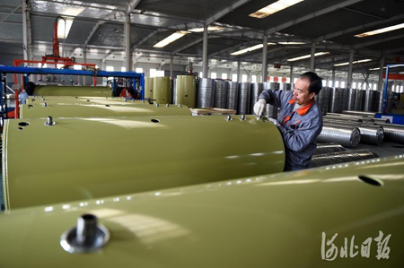11月10日,河北光源太陽(yáng)能科技有限公司工人在蓄熱式智能電鍋爐生產(chǎn)線上忙碌。