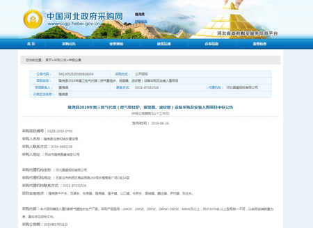光源公司中標(biāo)隆堯縣2019年第三批氣代煤(燃?xì)獗趻鞝t、報(bào)警器、波紋管)設(shè)備采購(gòu)及安裝入圍項(xiàng)目