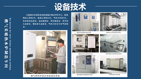 光源擁有全國(guó)最先進(jìn)的采暖爐測(cè)試評(píng)價(jià)中心,配備高級(jí)工程師2名,檢測(cè)工程師20名,氣體分析師2名,包含研發(fā)實(shí)驗(yàn)室、成品檢測(cè)室、來料檢驗(yàn)室、零件耐久實(shí)驗(yàn)室、整機(jī)耐久實(shí)驗(yàn)室、氣體分析室與水氣供給室。