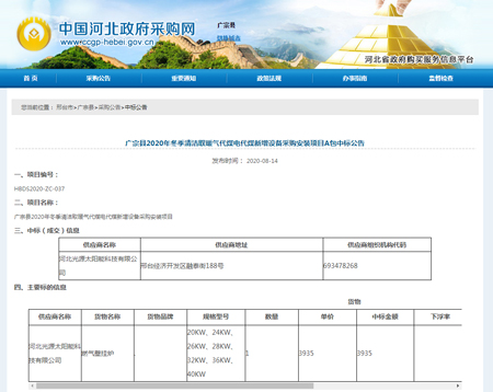 廣宗縣2020年冬季清潔取暖氣代煤電代煤新增設(shè)備采購(gòu)安裝項(xiàng)目